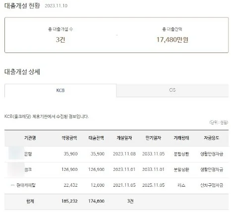 • 2금융권 대출 다수 보유로 인해 신용 점수 하락