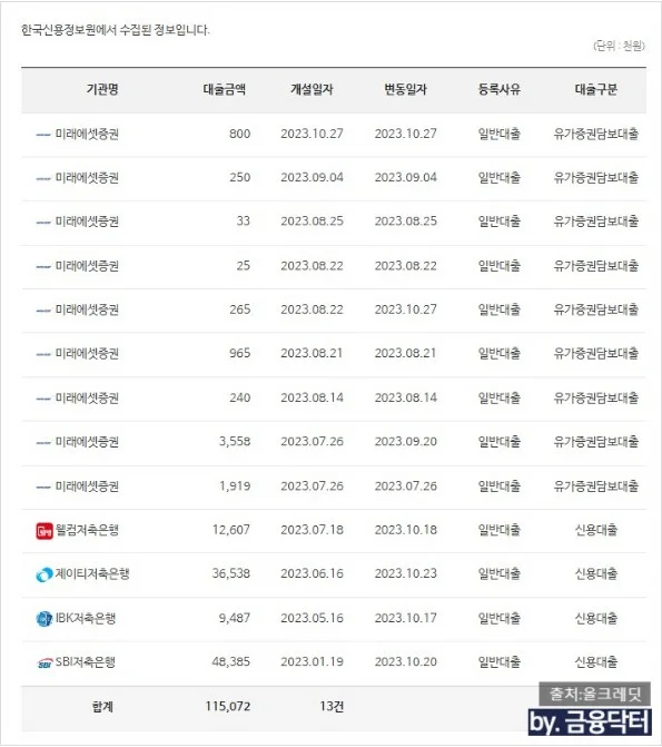 ✅ 대출건수: 5건 → 1건 (공제회 지급보증 포함)