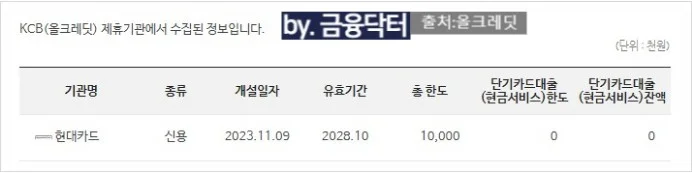 📅 11/13 – 신용카드 신규 개설 (한도 1,000만원)