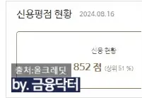 카드 잔액 일부 반영 → 올크레딧 852점으로 상승