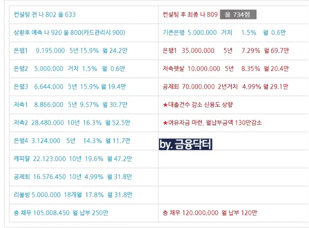 교직원공제회대여 활용한 채무통합 결과