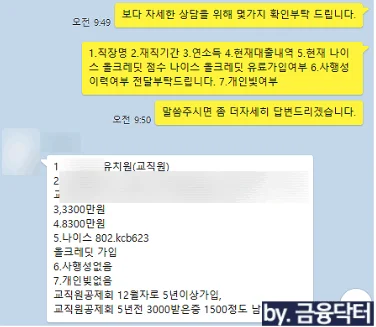 이번 사례는 공립 유치원에서 무기계약직으로 근무 중인 교직원으로 고금리 다중채무로 인해 어려움이 컸지만 직장인 통대환 컨설팅을 통해 전액 저금리로 대환에 성공한 케이스였습니다.