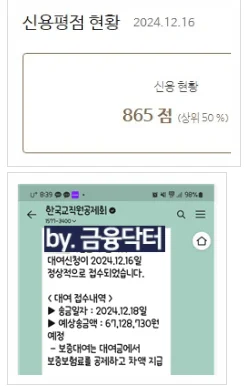 정기 변동 이후 카드 잔액이 줄어들며 올크레딧 점수가 865점까지 상향되었고 공제회 보증대여 7000만원 신청을 안내했습니다.