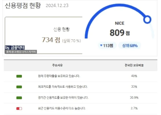 📈 전체 컨설팅 기간은 약 20일 정도 소요되었으며 최종 신용도는 나이스 809점 올크레딧 734점을 유지하고 있습니다. 카드 사용 금액이 추가로 반영될 경우 올크레딧 점수는 800점 이상까지 상향 가능성이 있어 향후 관리 방향도 함께 안내드렸습니다.
