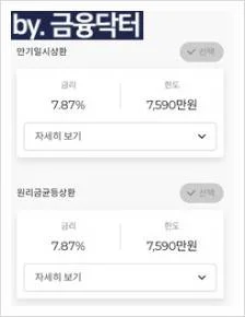 금융사 조회 결과 7590만원 연 7.87% 10년 분할상환 조건으로 승인되어 정상 실행되었습니다.