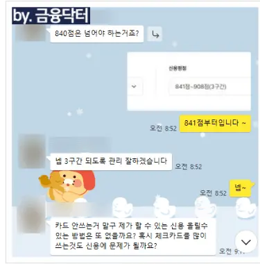 전체 컨설팅 기간은 약 2개월 보름 정도 소요되었으며 최종 신용도는 나이스 909점 올크레딧 845점을 유지하고 있습니다.