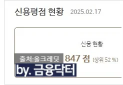 정기 변동 이후 카드 잔액이 조정되며 올크레딧 점수가 847점까지 상향되어 예상대로 3구간에 진입했습니다. 공제회 보증대여 7000만원 신청을 안내드렸고 2월 19일 정상 승인 처리되었습니다.