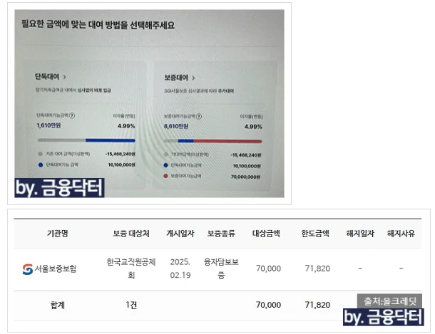 교직원 공제회 대여 상품은 장기저축 가입 이후 급여에서 저축 급여가 1회 이상 빠져나간 시점부터 신청이 가능합니다. 일반 대출상품과 달리 DSR 비율에 포함되지 않고 신용도에도 영향을 주지 않는다는 장점이 있으며 금리 또한 5퍼센트 미만으로 매우 저렴한 편입니다. 다만 서울보증보험을 연계해 실행되기 때문에 보증료가 발생하게 됩니다.