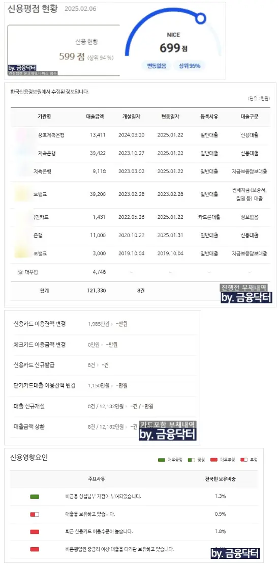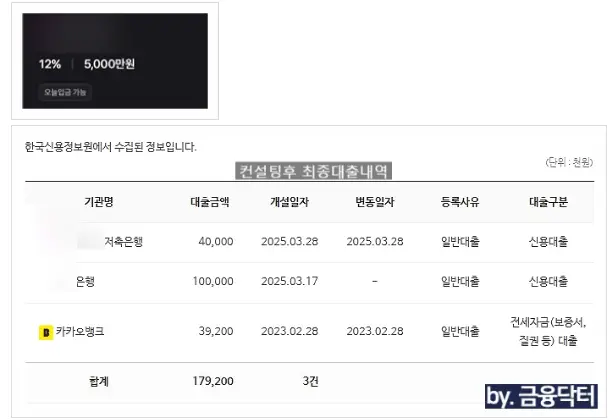 다만 2금융권을 일부 병행하게 되며 신용점수는 일시적으로 하락했지만 기존에 정리한 카드 잔액이 전산에 반영될 경우 700점대 중반까지는 충분히 회복 가능한 구조입니다.