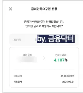 이 시점에서 기존에 이용 중이던 전세자금대출에 대해 금리 인하 신청을 안내드렸고 상향된 신용도를 바탕으로 금리가 재산정되었습니다.