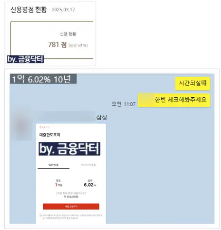 아직 즉시 진행이 불가능한 점수 구간은 아니었지만 3월 정기 변동 시 카드 관리 내역이 반영되면 추가 상향 가능성이 높다고 판단되어 진행 가능성이 높은 은행에 계좌만 선개설해 두도록 요청드렸습니다.
