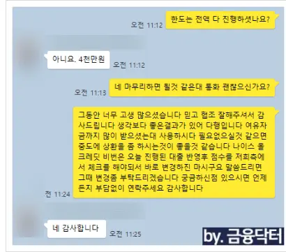 이후 추가 자금 요청이 있어 추가로 은행권 조건을 확인했으나 더 이상의 결과는 어려웠고 상대적으로 조건이 나았던 저축은행 상품을 선택해 4000만원만 신청하여 정상 승인되며 모든 컨설팅을 마무리했습니다.