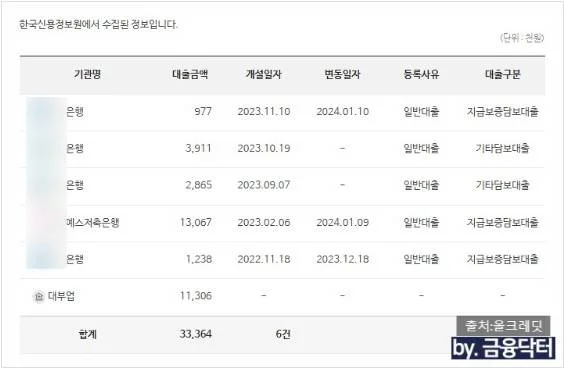 특이사항: 고금리 대출 다수, 대부업 이용, 카드 돌려막기