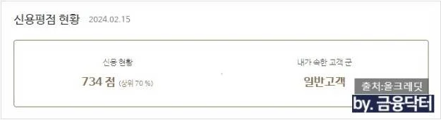 2월 15일: 일부 카드값 반영 → 올크레딧 734점