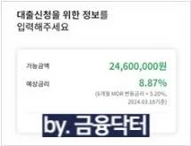 비대면 은행 확인 결과: 2460만원 / 8.87% 조건 확인