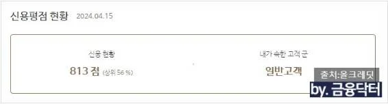 4월 15일: 카드값 완전 반영 → 올크레딧 813점