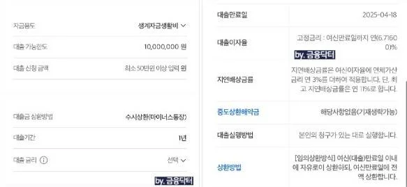 B은행: 1000만원 / 6.71% (마이너스통장 가능)