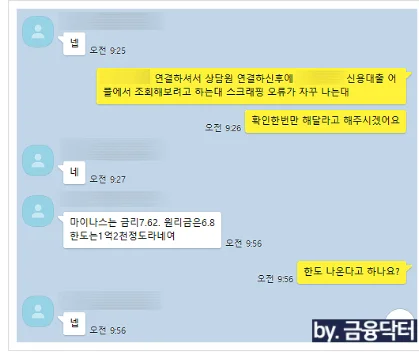 첫 번째 조건은 1억2천만원 금리 6.8% 8년 상환 조건이었으며 비대면 한도는 확인되었지만 지점 수기 심사 과정에서 상환 이력으로 인해 거절 처리되었습니다. 이 경우 경험이 부족하면 단순 거절로 마무리되는 경우가 많지만 구조상 다른 은행 대안이 가능하다고 판단했습니다.