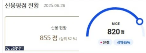 최종 진행 후 현재 신용점수는 나이스 820점 올크레딧 855점 수준을 유지하고 있습니다. 통대환 기간은 총 7일이 소요된 케이스로 조건이 맞으면 단기간에 마무리되는 사례도 존재합니다.
