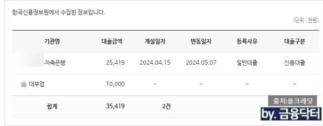 면책 후 연체 이력이 삭제되어 저축은행 한 곳에서 대부업 통합 진행 경험 있음