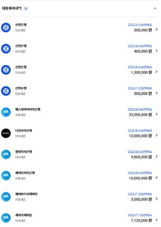 웰컴저축은행 | 9,800,000 | 차량담보대출 |