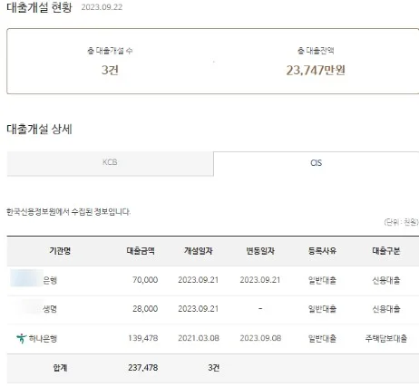 금융기관 | 대출 금액 (원) | 대출 유형 |