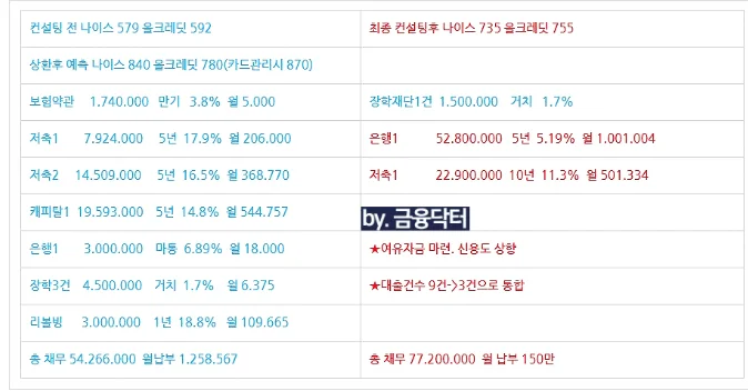 이후 카드 돌려막기와 보험약관대출까지 이어지며 채무 구조가 점점 복잡해졌고 연봉 인상으로 연체 없이 버틸 수는 있었지만 여유 없는 생활에 심리적 부담이 매우 컸다고 하셨습니다. 그러던 중 직장 동료의 권유로 채무통합대환대출을 알게 되었고 여러 사례를 검색하신 끝에 금융닥터 채무컨설팅 후기를 보고 신중하게 상담을 요청해 주셨습니다.