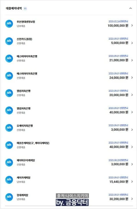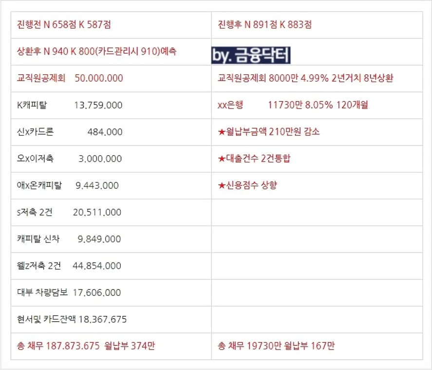 교직원공제회 대여 5,000만 원 외 모든 고금리 부채·카드 잔액 1.33억 원 전액 상환