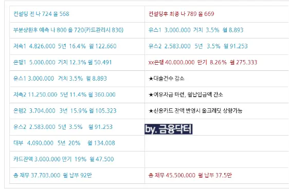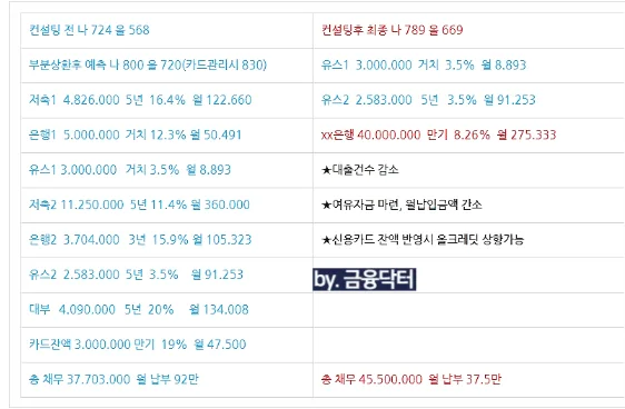 고객님도 이러한 상황에 처해 있었으며 소득 대비 부채비율은 낮았지만 낮은 신용도로 인해 저금리 전환이 어려웠고 추가자금 마련도 막혀 있었습니다. 매달 카드로 돌려 막으며 버텨왔지만 다음 달부터는 연체가 발생할 수 있는 상황이라 해결 방법을 찾던 중 금융닥터에 상담을 요청하셨습니다.