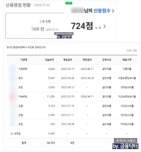 당시 신용점수: 나이스 760점대 / 올크레딧 690점대