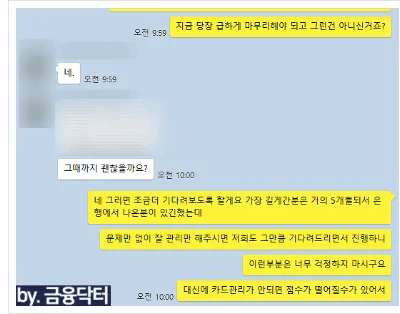 종합적으로 검토한 결과 약속을 지켜주고 신용 관리에 협조해 주신다면 은행권에서 최소 5000만원 수준은 가능해 보였고 부족한 금액은 2금융권을 병행해야 할 수 있음을 안내드렸으며 고객분께서 동의하셨습니다.