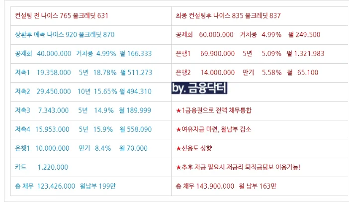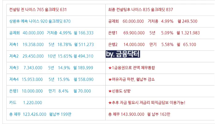 이번 사례는 교육 공무원으로 과거 개인회생 이력이 있었고 고금리 다중채무로 어려움이 컸지만 직장인 통대환 컨설팅을 통해 저금리 채무통합에 성공한 케이스였습니다.