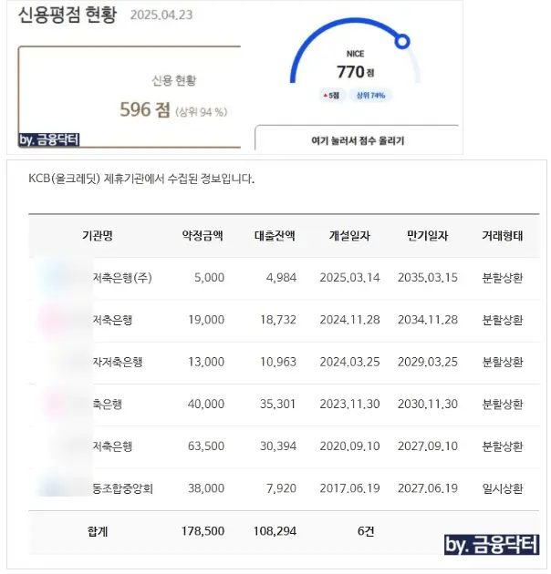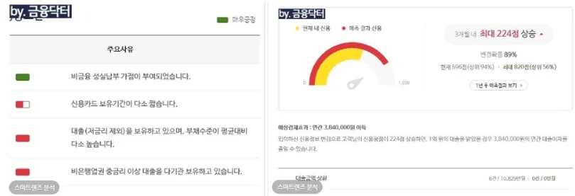 반면 긍정적인 요소도 분명했습니다. 과거 장단기 연체나 불량 이력이 전혀 없었고 대학병원 재직으로 교직원공제회 가입이 가능했으며 아직 미가입 상태였다는 점이 큰 기회 요소였습니다. 또한 소득 대비 부채비율이 높지 않았고 기존 채무를 정리한 뒤 관리만 잘 이루어진다면 신용도 회복 폭이 매우 클 것으로 판단되었습니다.