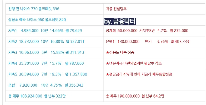 이번 시간에는 고금리 다중채무로 어려움이 컸던 대학병원 간호사분이 직장인 채무통합 컨설팅을 통해 저금리로 채무통합에 성공한 실제 진행 후기를 소개해 드리겠습니다.